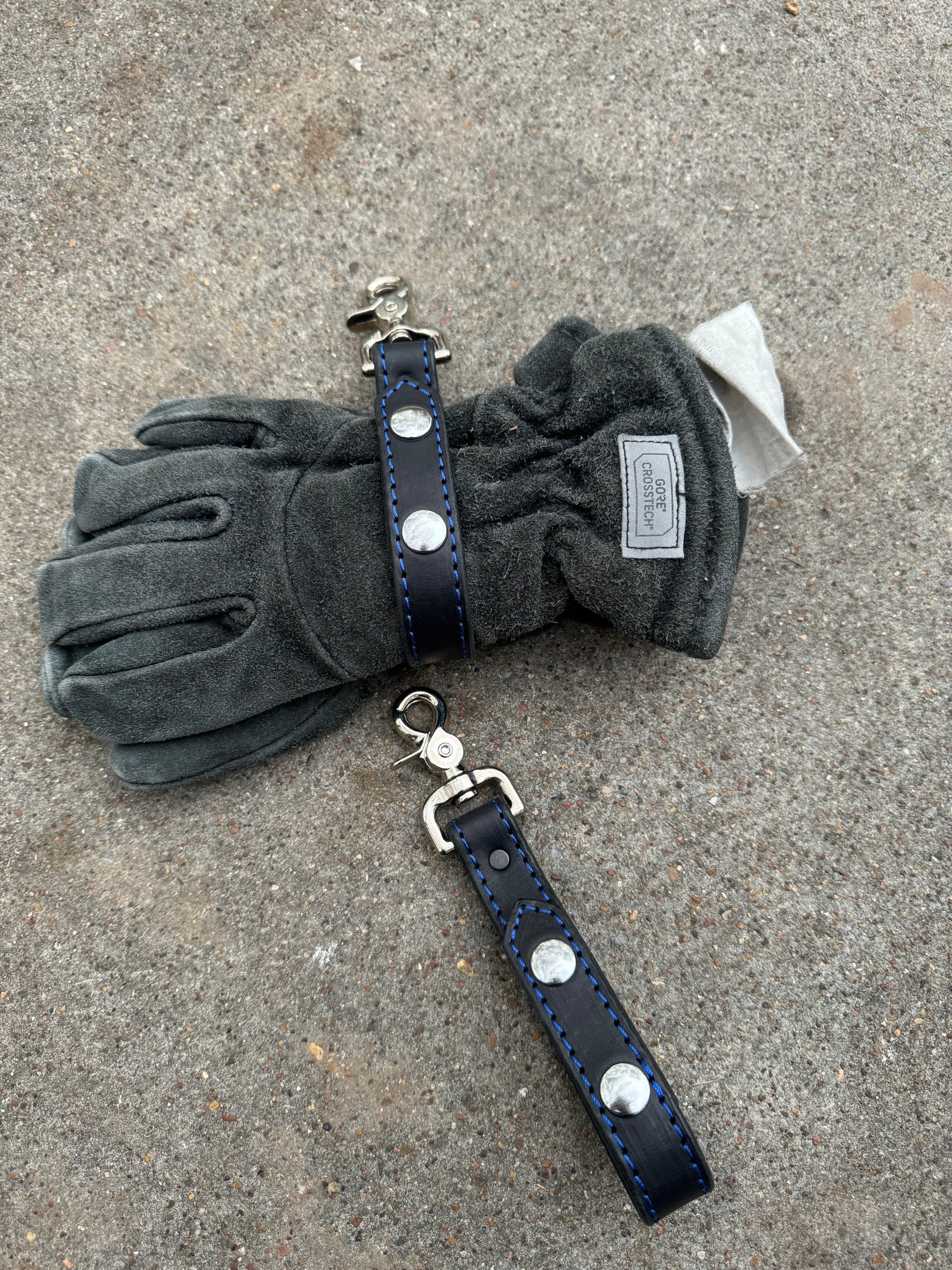 Glove Strap with Snaps - Black with Blue Stitching/Silver Hardware