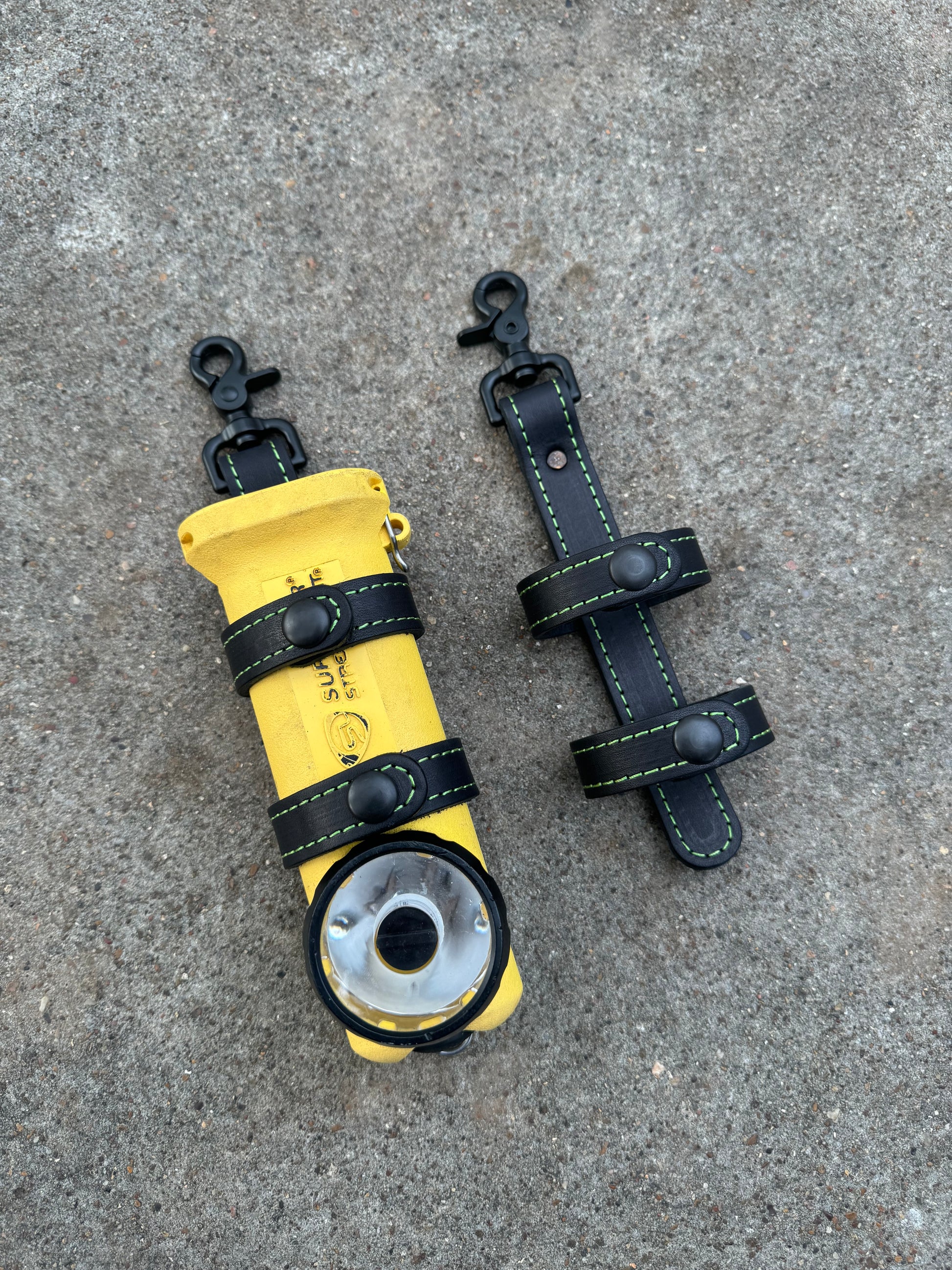Inverted Flashlight Strap - Black with Green Stitching